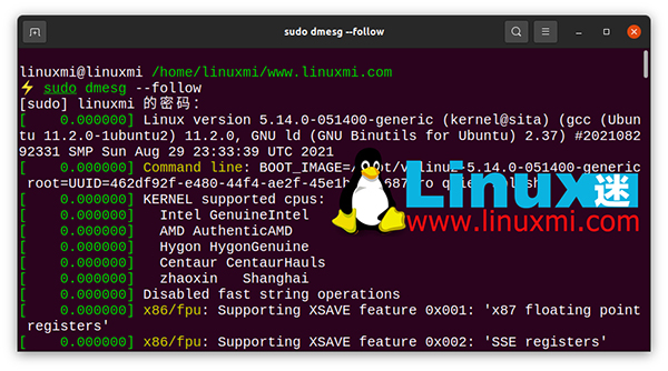 linuxmi@linuxmi /home/linuxmi/www.linuxmi.com ⚡ sudo dmesg --follow
