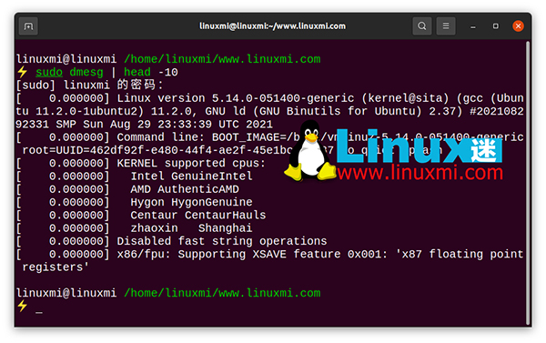 linuxmi@linuxmi /home/linuxmi/www.linuxmi.com ⚡ sudo dmesg | head -10