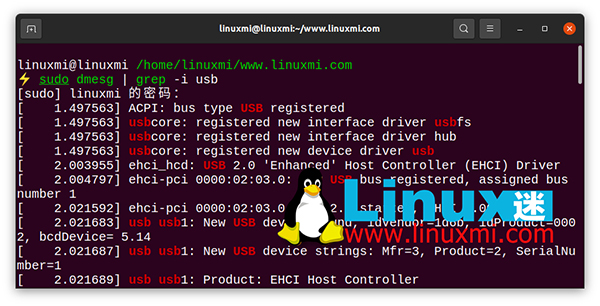 linuxmi@linuxmi /home/linuxmi/www.linuxmi.com ⚡ sudo dmesg | grep -i usb