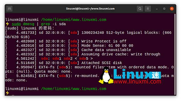 linuxmi@linuxmi /home/linuxmi/www.linuxmi.com ⚡ sudo dmesg | grep -i sda