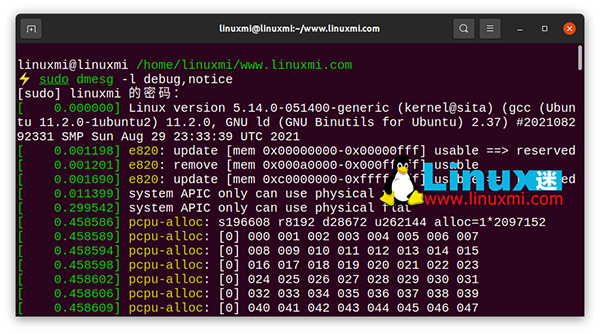 linuxmi@linuxmi /home/linuxmi/www.linuxmi.com ⚡ sudo dmesg -l debug,notice