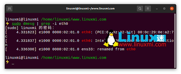 linuxmi@linuxmi /home/linuxmi/www.linuxmi.com ⚡ sudo dmesg | grep -i eth0