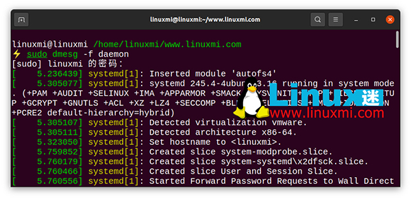 linuxmi@linuxmi /home/linuxmi/www.linuxmi.com ⚡ sudo dmesg -f daemon