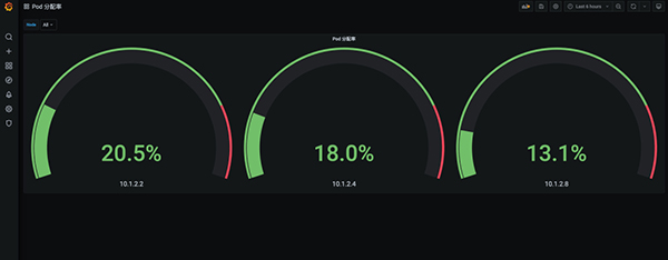 在这里,我们可以部署 Prometheus + Grafana,配置监控视图,更好的体现集群中节点的 Pod 分配率。