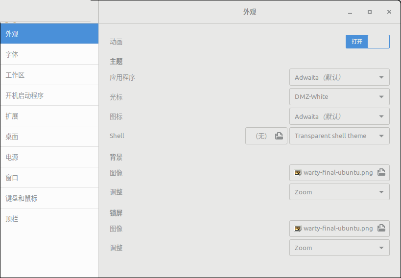 1.打开Tweaks实用程序,然后单击“外观”类别以打开相应的面板。