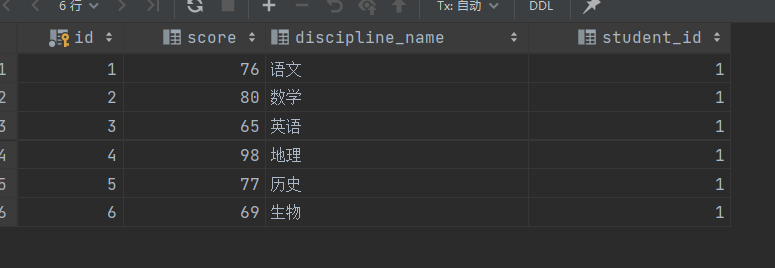 INSERT INTO achievement (id, score, discipline_name, student_id) VALUES (1, 76, '语文', 1);