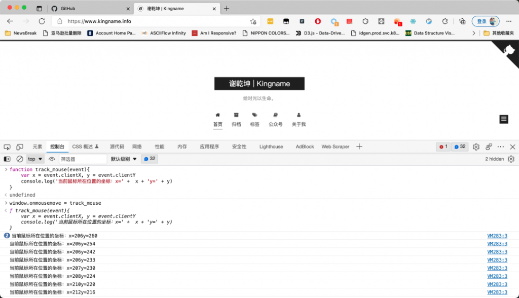 你执行命令以后,只要在页面上移动鼠标,你就会在控制台看到大量的坐标被打印出来。