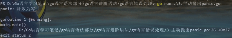异常的捕获,使程序还能够正常的运行,如果有致命错误就需要进行错误的抛出了,也就是宕机,不到迫不得已千万不要使用这个函数,有可能会造成大量数据的丢失