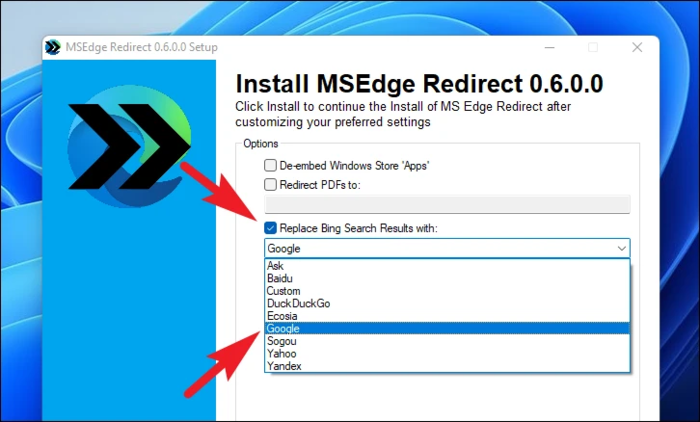 勾选你想要作出的变更后,就可以点击“Install”来让 MSEdgeRedirect 生效了。