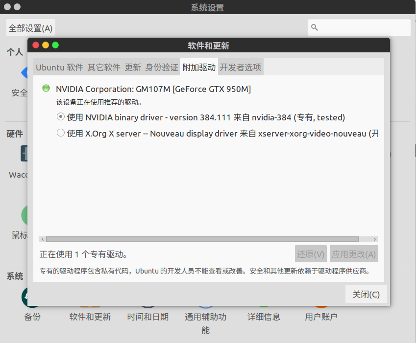 最简单的安装方式是直接在“系统设置->软件和更新->附加驱动”中安装