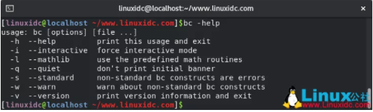 [linuxidc@localhost ~/www.linuxidc.com]$bc -help