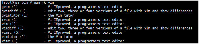 如果不记得bash关键词,可以使用 -k, 下面是查找与vim有关的关键词 (这个很实用)