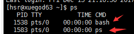 在默认情况下,ps命令只会显示运行在当前控制台下,属于当前用户的进程,在上图中,我们只运行了bash shell以及ps命令本身。 上图中显示了程序的进程ID(1538,1583),它们运行在TTY终端, 以及进程已有的CPU(TIME)时间。