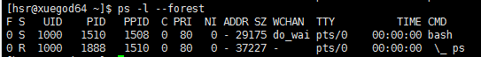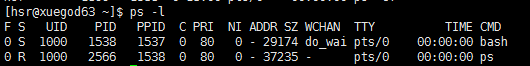 可以看出bash命令处于休眠状态。是一个控制进程。 Ps是运行在系统的前台。