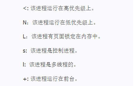 上图中列输出与Unix风格输出大部份是一样的。只有小部份不同包括 VSZ是指进程在内存中的大小,以KB单位。 RSS是指进程在未换出时占用的物理内存。 STAT:代表当前进程状态的双字符状态码。
