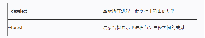 GNU长参数风格的ps命令参数常用如下(其它很多未列出)