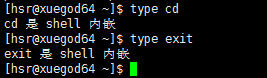 要分区是外部命令还是内部命令可以使用type 来查看,如下图查看cd是内部还是外部命令: