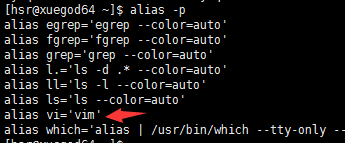 alias 命令也是一个内建命令,允许你为常用的命令和参数创建另一个名称,从而减少输入。在系统中已经设置好了一些常用的命令的别名。查看当前可用的别名使用alias -p如下图所示:
