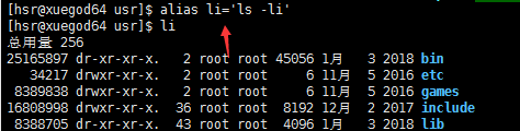 下面通过alias 命令来创建属于自己的别名。把ls -li 长列表命令参数改别名为li。