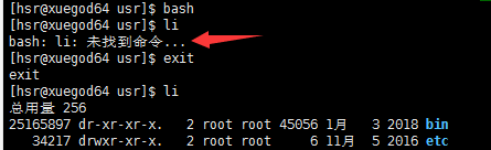一但定义好了别名就可以随时在shell中使用,但要注意的是只有在当前进程中才有效。下面演示在子shell中使用别名无效,只有退出子shell才行。