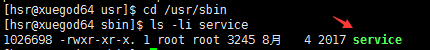 根据路径提示,可以找到命令所在目录,如找service命令如下所示: