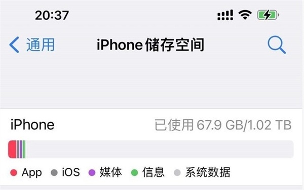 因此我们看到苹果设备的存储空间就是“足容”的,1TB版的手机,就是显示1TB空间。