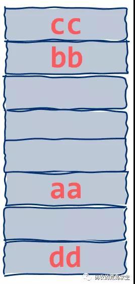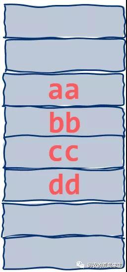 然而对于现代操作系统尤其具备虚拟内存能力的系统来说,内存碎片问题通常可能并不会和我们想象的那样严重,原因就在于分配的内存只需要在虚拟地址空间上连续而不必在物理内存上也连续,假定我们在虚拟内存地址空间需要存放“aabbccdd”这样的字符串,在虚拟地址空间上看这是连续的就像这样: