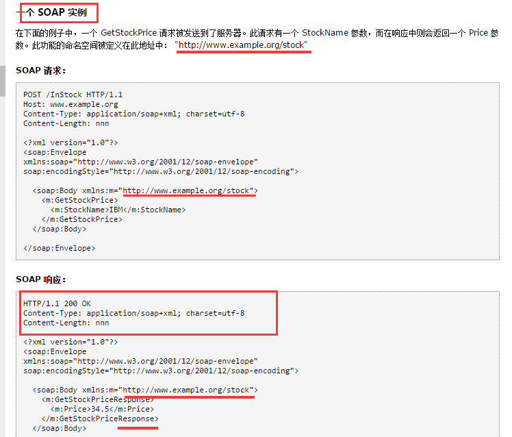 所有以上的元素均被声明于针对 SOAP 封装的默认命名空间中: