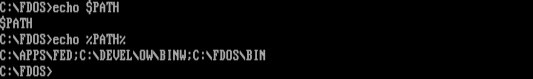 不过,在 FreeDOS 中引用或 扩展 一个环境变量的值的方法,与你在 Linux 上所使用的方法是完全不同的。在 FreeDOS 中,你不能使用美元符号($)来引用一个变量。你反而需要使用百分符号 (%)来包围变量的名称。