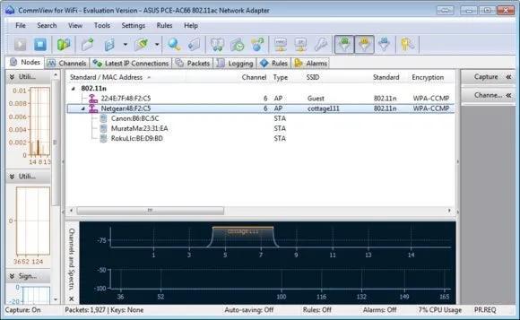 图1. WiFi分析工具在设备连接到网络后显示了‘cottage111’的隐藏SSID
