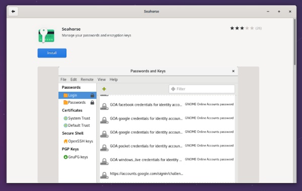 此外,你可以找到它的 Flatpak 包。所以,无论你使用的是哪种 Linux 发行版,都可以安装 Seahorse。
