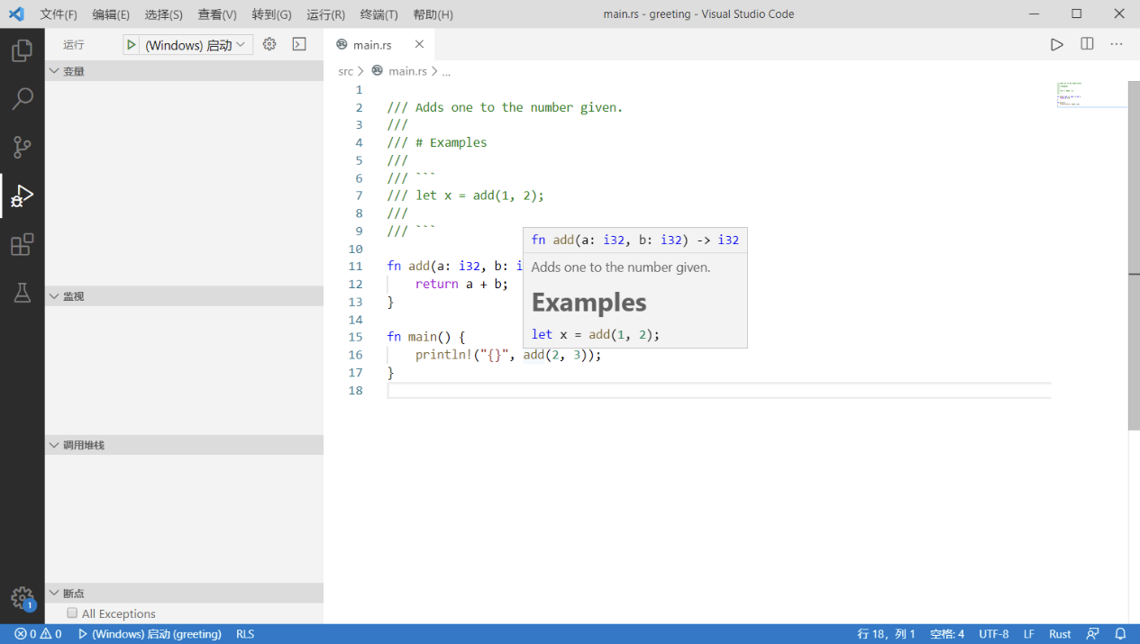 程序中的函数 add 就会拥有一段优雅的注释,并可以显示在 IDE 中: