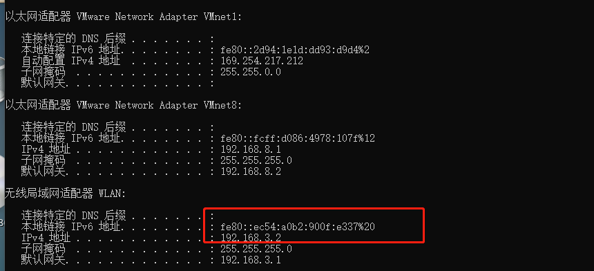 ping 物理机地址,是WLAN那个【wifi】ping 192.168.3.2,成功证明第一步搞定,ping不通可以通过关闭物理机的防火墙试试,毕竟可能存在影响禁ping