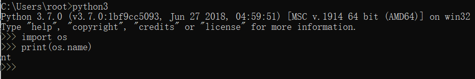 import os print(os.name)