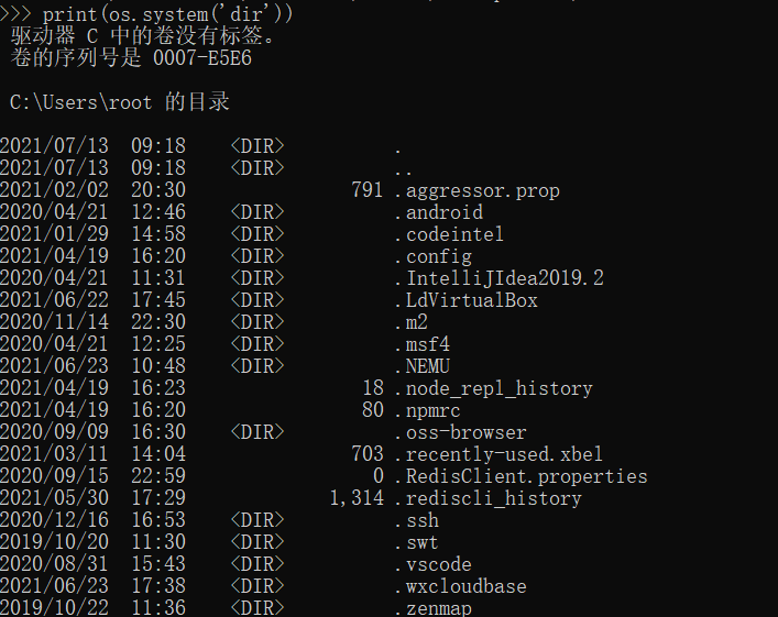 name=os.system('dir')