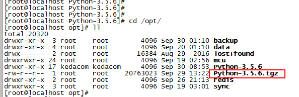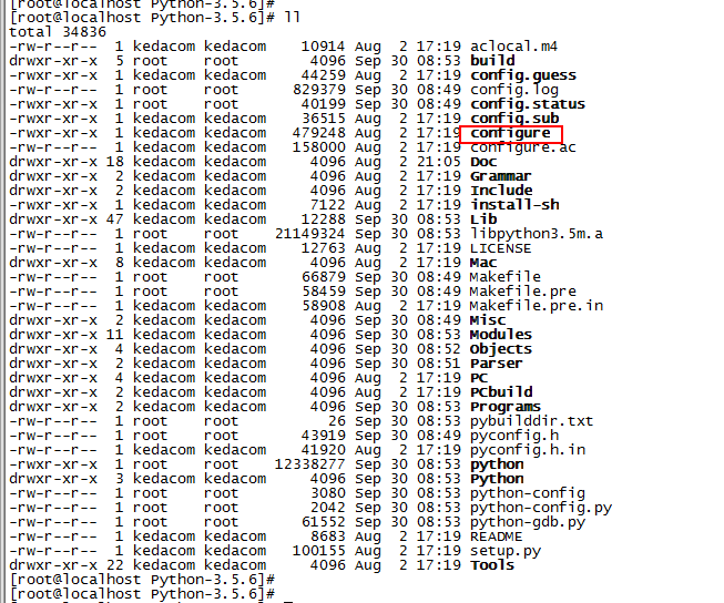 2、解压安装压缩包:tar -xvzf Python-3.5.6.tgz,出现如下目录。