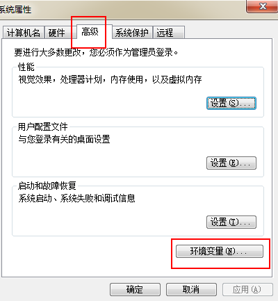 b、选择“高级设置”,点击“高级”,再选择“环境变量”