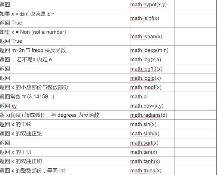 cmath 模块的函数跟 math 模块函数基本一致,区别是 cmath 模块运算的是复数,math 模块运算的是数学运算。