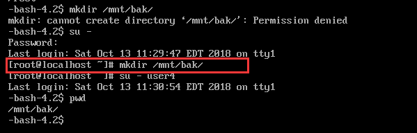 新增一个用户:user4 并指定家目录:/mnt/bak/