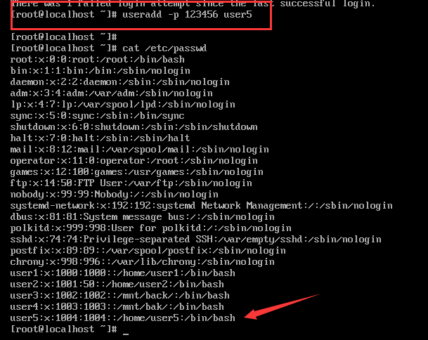 useradd -p 123456 user5