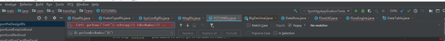 这里匹配阶段结束(/w+).getItem("(\w+)").toString().ToBscNumber()可以匹配到所有 X.getItem(“X”).toString().ToBscNumber()的代码