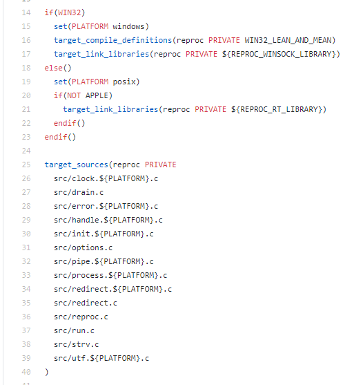 # 设置平台变量 if (CMAKE_SYSTEM_NAME MATCHES "Linux") set(PLATFORM linux) elseif (CMAKE_SYSTEM_NAME MATCHES "Windows") set(PLATFORM windows) endif()
