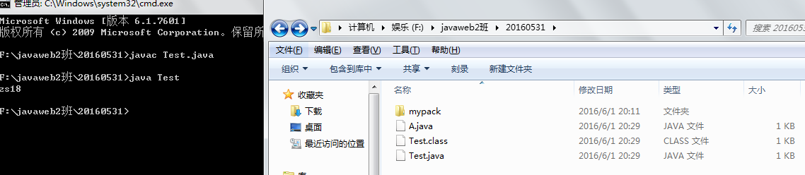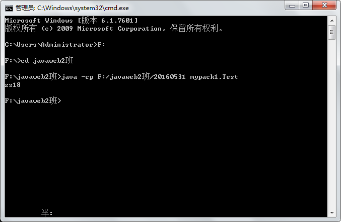 - 当类路径不在当前目录下时,需要用到 java -cp ...,如:java -cp F:/javaweb2班/20160531 mypack1.java。