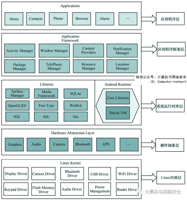 正是因为Android采用多层架构,在保护信息安全的同时,也保证开放平台的灵活性。