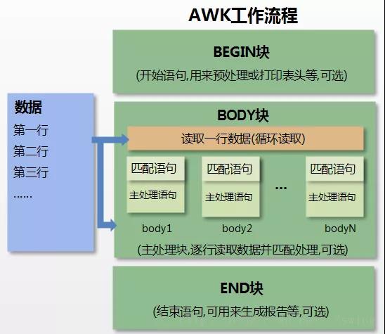 这个简单示例,完整的体现了 awk 的工作机制和原理,希望通过此示例能够帮你真正理解 awk 是如何工作的。