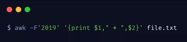 我们指定分隔符为 2019,这样就将行内容分割为了两部分,将 2019 替换成了 *