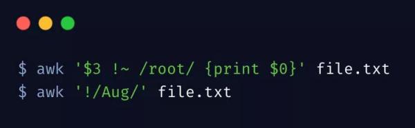 同样,awk 可以像 grep 一样匹配某一行,就像这样