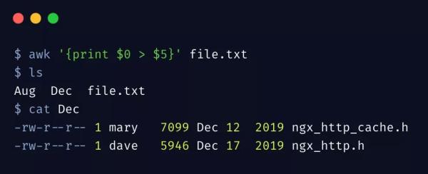 awk 支持重定向符号 >,直接将每行内容重定向到月份命名的文件了,当然你也可以把指定的列输出到文件
