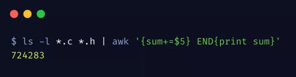 第 5 列表示文件大小,每读取一行就会将该文件大小计算到 sum 变量中,在最后 END 阶段打印出 sum,也就是所有文件的大小总和。