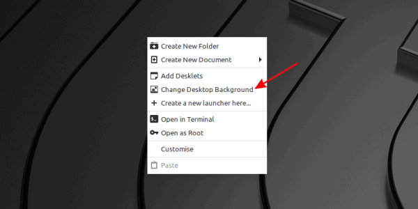 要改变 Cinnamon 桌面的背景,只需在桌面上点击右键,选择“改变桌面背景”。它将打开一个简单易用的窗口,在左侧列出了可用的背景系统文件夹,右侧有每个文件夹内的图片预览。